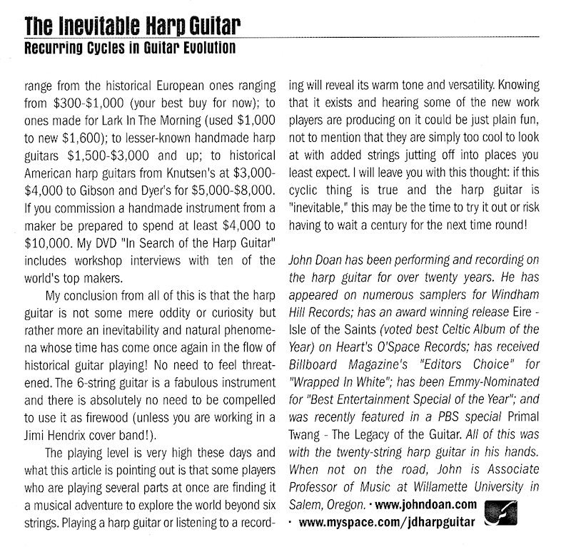 Fingerstyle Guitar Magazine – The Inevitable Harp Guitar – no.66 pg44 Published April 9, 2012 at 800 × 767 in The Inevitable Harp Guitar: Recurring Cycles in Guitar Evolution