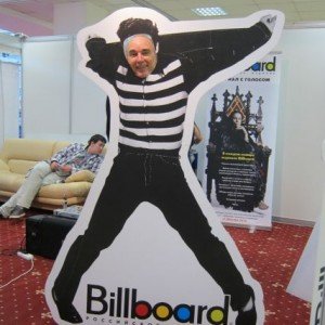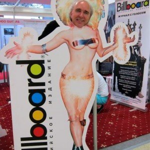 At the NAMM show there were retailers of instruments of all shapes and sizes. There was even a guitar that may have been built near the old Chernobyl nuclear plant and Billboard Magazine even had a booth there. I was standing in the booth when Deirdra asked me to pose for some photos by putting my face in an opening behind some cardboard signs. I had no idea why she was laughing so hard but I was sure it was at my expense.