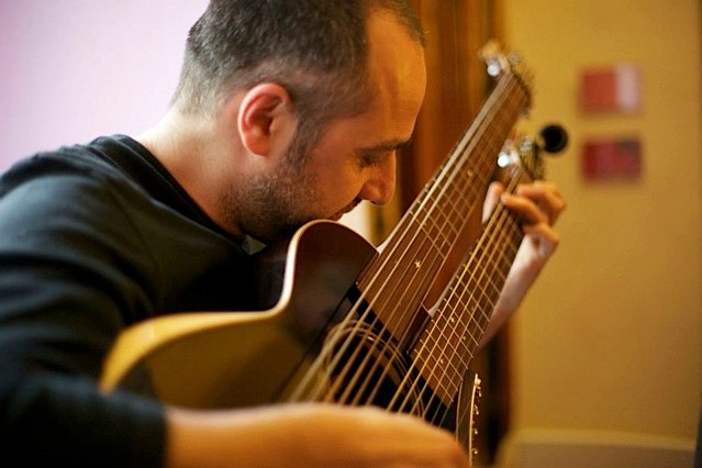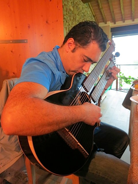 One of the most amazing fingerstyle guitarists I have ever heard, François Sciortino had just recorded with Andrea and grabbed by harp guitar from me and began to make me feel like a beginner all over again.
