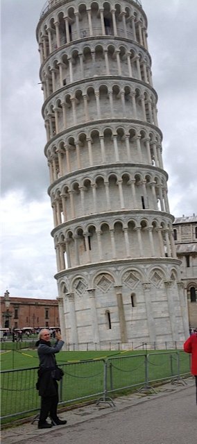 17.John Doan pushing Tower of Pisa Published June 24, 2013 at 284 × 640 in Italy Part II Pisa: A City of Music, Dining, Harp Guitars, and A Once Leaning Tower!