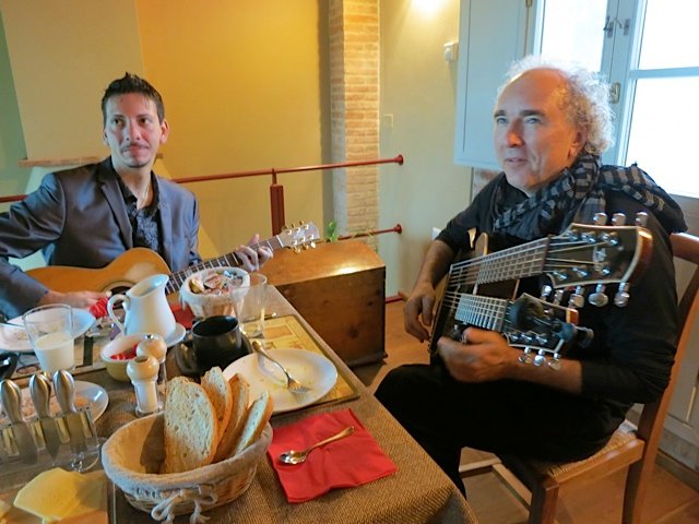 8.Andrea and John Doan Practice at Table2 Published June 24, 2013 at 640 × 480 in Italy Part II Pisa: A City of Music, Dining, Harp Guitars, and A Once Leaning Tower!