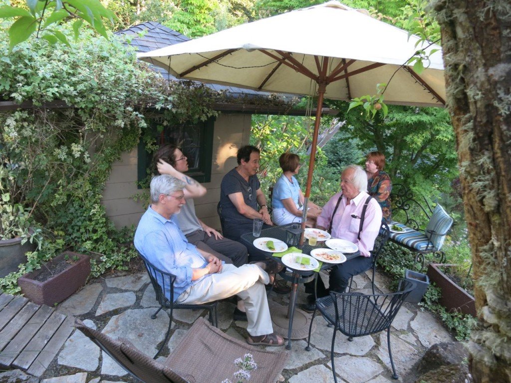Saturday early evening began with a potluck/concert where the audience brings a main dish and dessert. Everyone enjoyed hanging out together at various places around John and Deirdra’s mountain top.
