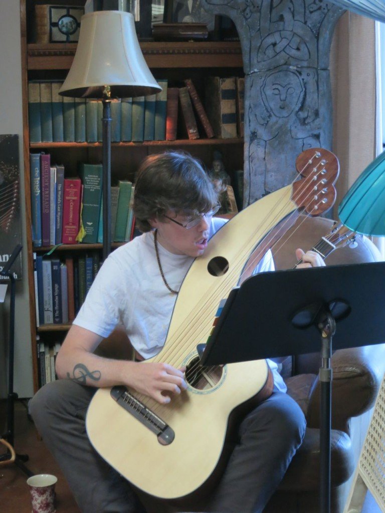 - Steve Stein in class with 1890’s Knutsen Harp Guitar
