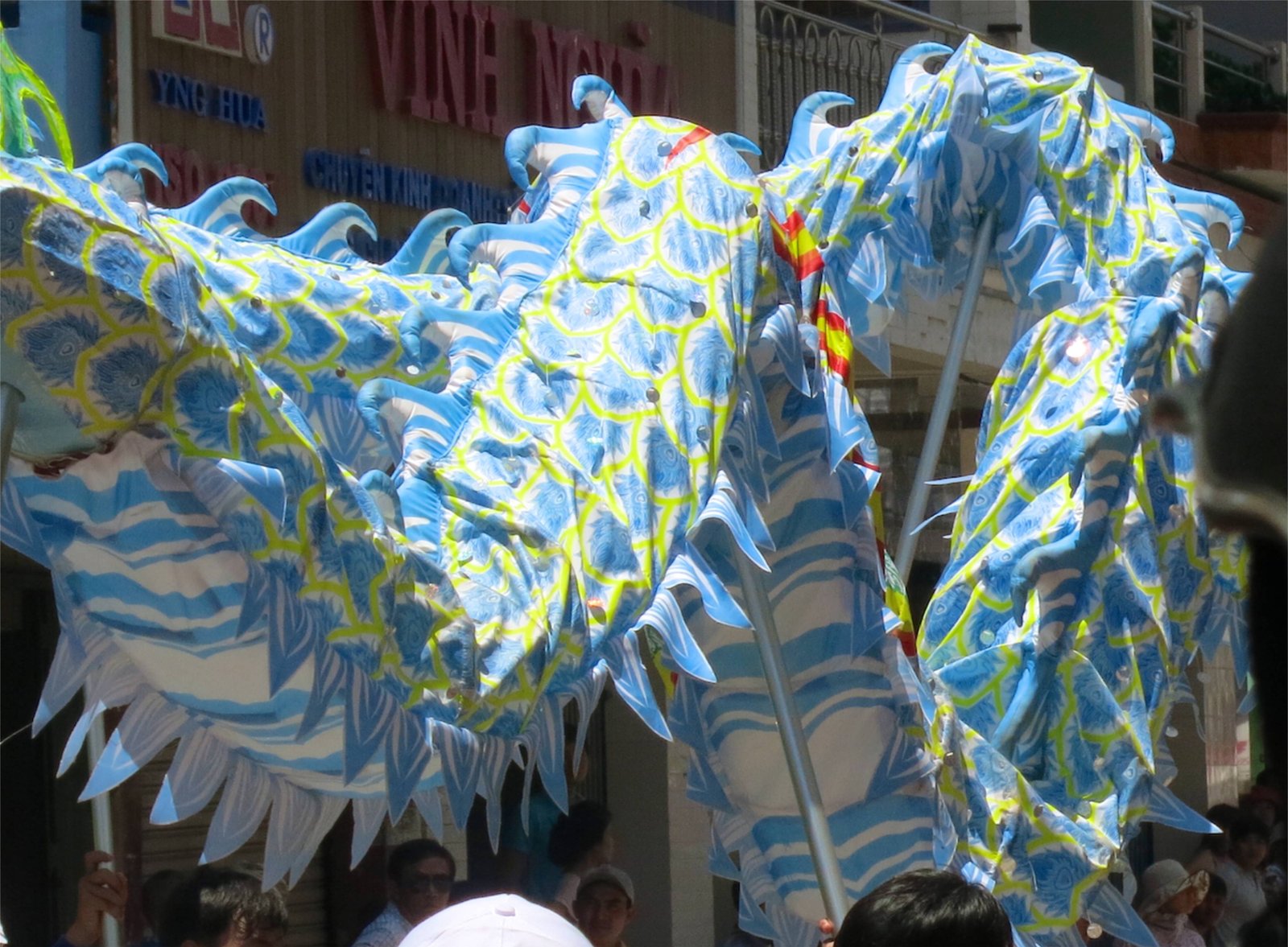 80. Phan Theit Parade Blue Dragon Published October 11, 2014 at 4000 × 2943 in Part 5: John Doan’s Southeast Asia Tour to Phan Thiết – From Dragon Fruit to a Dragon Festival Parade, a Secret Concert and Secret Beaches, sleeping in a restaurant and other Adventures on Buses and Motorcycles