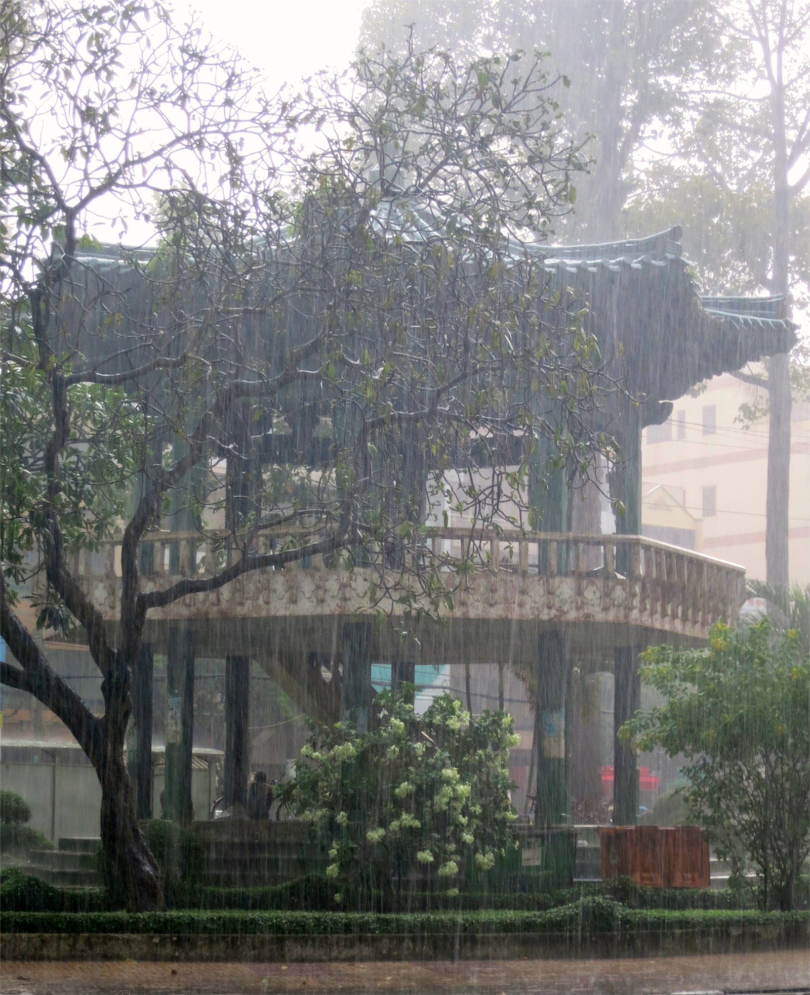 96. Park Pagoda in Rain 5 minutes later Published October 11, 2014 at 2709 × 3331 in Part 5: John Doan’s Southeast Asia Tour to Phan Thiết – From Dragon Fruit to a Dragon Festival Parade, a Secret Concert and Secret Beaches, sleeping in a restaurant and other Adventures on Buses and Motorcycles