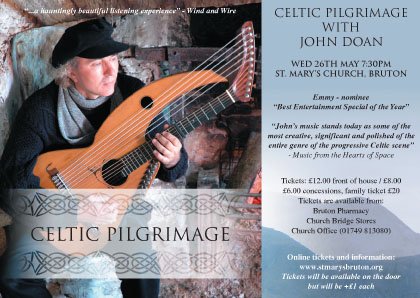 The following are press releases and materials that promoted John Doan’s Celtic Pilgrimage concerts, workshops, presentations, and speaking gigs, based upon his popular A Celtic Pilgrimage and award-winning Eire – Isle of the Saints and Wayfarer albums and A Celtic Pilgrimage DVD. For more information on the concert specifics, see the Celtic Pilgrimage Concert description.