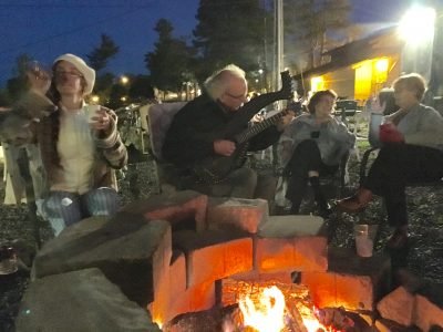One of the nights we go down to the little nearby town of Independence, bring some harp guitars, and try out some local brews while sitting around a fire pit.