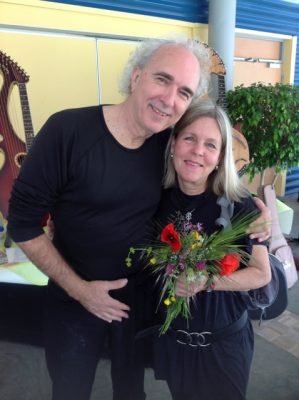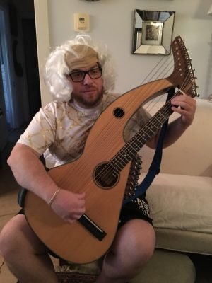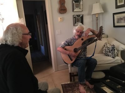 James and Angele breaking into a spontaneous harp guitar duet