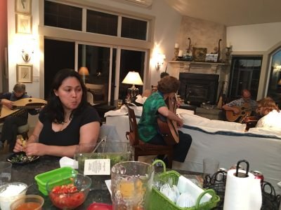 Other nights we hang out after dinner and play for each other. This is a great informal way to share music, technical insights, and to get a chance to play in a stress free and supportive environment.