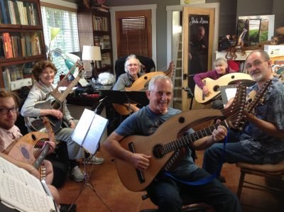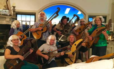 John Doan’s Eleventh Annual Harp Guitar Retreat is set for June 28th to July 1st 2018 in Salem, Oregon at the home of John and Deirdra Doan. You are invited to join us. (see below for a daily itinerary, Saturday concert, testimonials, photos, fees, and registration information). Players wanting to learn more about the harp guitar have come from across the United States and as far away as from Europe, and Malaysia.