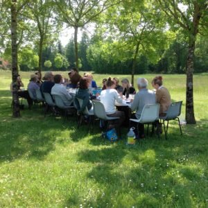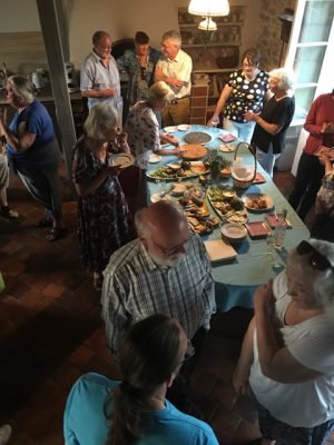 Lunches, dinners, evenings at a local outdoor pub, and times between lessons provide hang times to relax and have fun and on occasion visit with Lyra the little French Bull Dog.