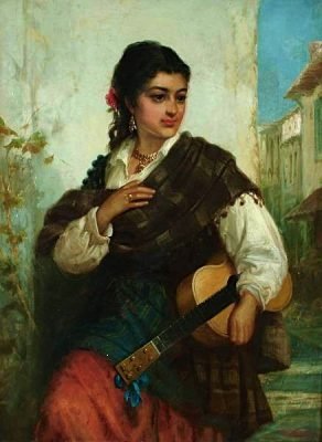 Robert Kemm (1837-1895) – A Spanish Girl With Guitar